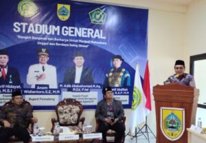 c. Bangunan masjid dengan 3 pintu | Melambangkan ilmu keislaman, berakhlak Al karimah serta pelaksanaan tri dharma perguruan tinggi |